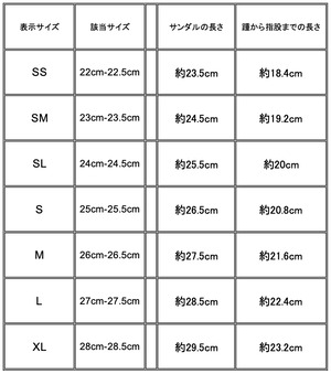 *お買い求めの際にはサイズにご注意ください。サンダルの特性上、革靴やスニーカーとはサイズ感が異なる場合がありますので、サイズ表をご確認の上、ご購入ください。